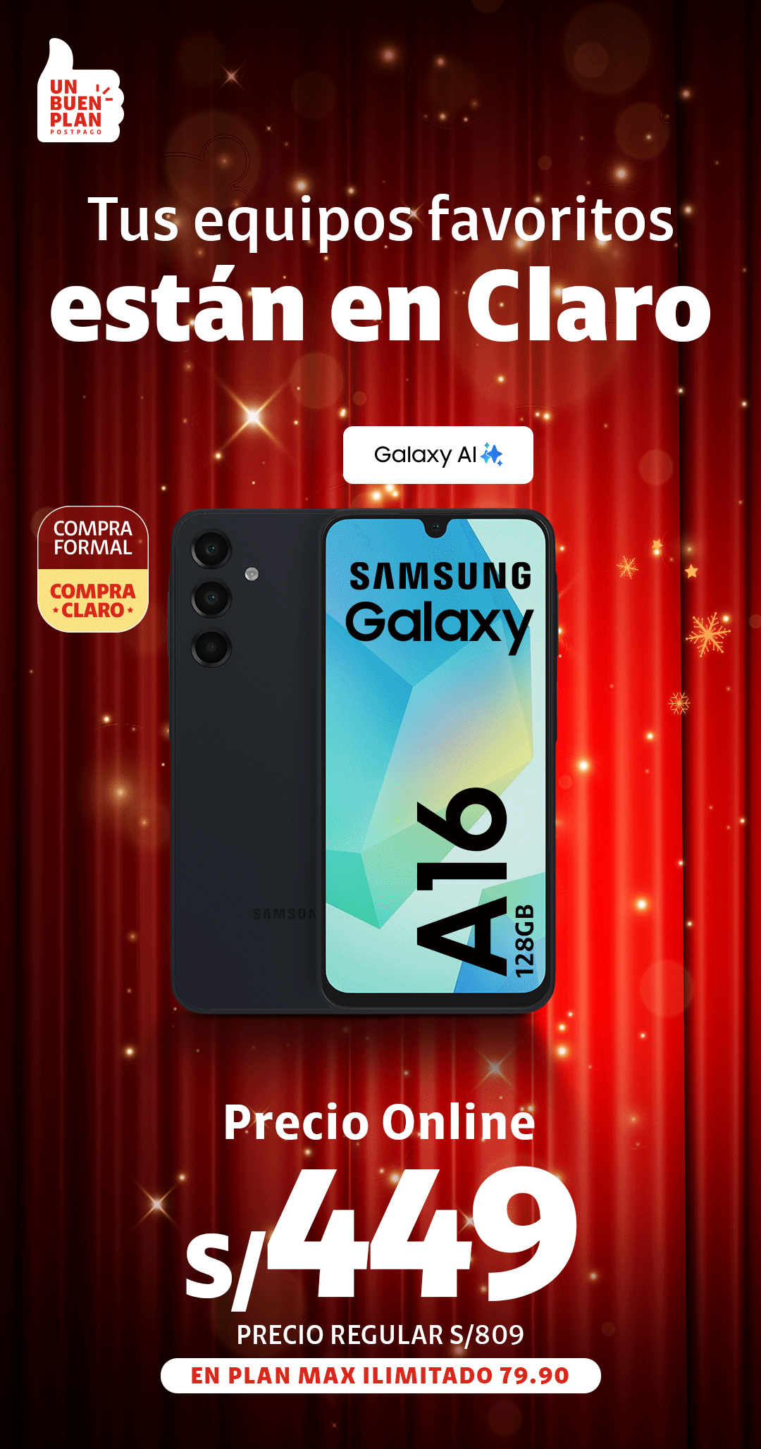 | | | |  |  | | ENTREGA EL MISMO DÍA En pedidos confirmados hasta las 2 p.m. | | En pedidos confirmados hasta las 2 p.m. | | |  | | Con tu línea 964433480 | |  | *En Renovación. Cobertura 5G y cómo disfrutarla en claro.pe/5g Sujeto a evaluación crediticia (clientes DNI y RUC 10). Vale al 17/11/25 y/o agotar stock. Stock mín.: 3. Al contado con acuerdo de equipos a 18 meses. En renovación con acuerdo de equipos concluido. Costo de equipo no incluye costo del plan. Restricciones: tiendaclaro.pe | | | Tranquilidad y ahorro Protege tu nuevo equipo ante lo inesperado | | |  | Protección Móvil Cuídalo ante robo, rotura de pantalla y más. Más información | | |  | ¡Explora la tienda más chévere! Encuentra muchos más equipos de última generación Más información | | | | | |