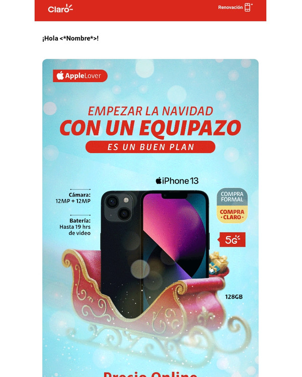 | | | |  |  | | ENTREGA EL MISMO DÍA En pedidos confirmados hasta las 2 p.m. | | En pedidos confirmados hasta las 2 p.m. | | |  | | Con tu línea 964433480 | |  | Cobertura 5G y cómo disfrutarla en claro.pe/5g En Renovación. Sujeto a evaluación crediticia (clientes DNI y RUC 10). Vale al 17/11/25 y/o agotar stock. Stock mín.: 3. Al contado con acuerdo de equipos a 18 meses. En renovación con acuerdo de equipos concluido. Costo de equipo no incluye costo del plan. Restricciones: tiendaclaro.pe | | | ¡Suma Claro puntos! Por pagar a tiempo tu recibo, ya tienes Claro puntos acumulados. | | |  | ¡Canjea Claro puntos por un descuento adicional! Consúltalo con tu asesor y obtén un descuento mayor para tu equipo. Ver Equipos | | | |  | | | Tienda Claro | | Encuentra las mejores marcas en equipos y accesorios. | | | | | | | | | |