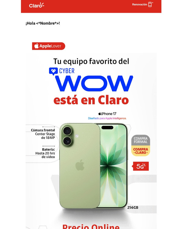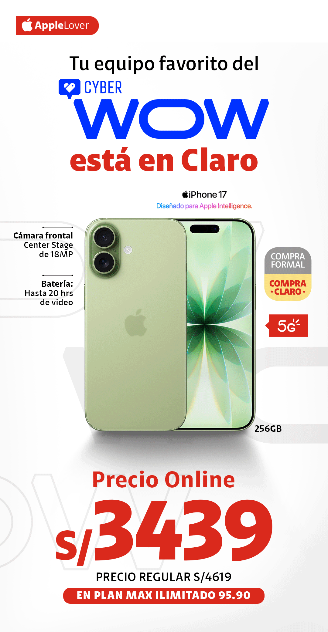 | | | |  |  |  | | ENTREGA EL MISMO DÍA En pedidos confirmados hasta las 2 p.m. | | En pedidos confirmados hasta las 2 p.m. | | | | |  | Cobertura 5G y cómo disfrutarla en claro.pe/5g En Renovación.Sujeto a evaluación crediticia. Vale del 03.11.25 al 06.11.25 y/o agotar stock para clientes DNI o RUC10. Al contado con acuerdo de equipos a 18 meses. Stock mín: 3. Máx. 1 equipo por línea. Renovación con acuerdo de equipos vencido. Planes Max Ilimitado sujetos a evaluación crediticia y cobertura; consulta condiciones y restricciones: claro.pe | | | ¡Suma Claro puntos! Por pagar a tiempo tu recibo, ya tienes Claro puntos acumulados. | | |  | ¡Canjea Claro puntos por un descuento adicional! Consúltalo con tu asesor y obtén un descuento mayor para tu equipo. Ver Equipos | | | |  | | | Tienda Claro | | Encuentra las mejores marcas en equipos y accesorios. | | | | | | | | | |