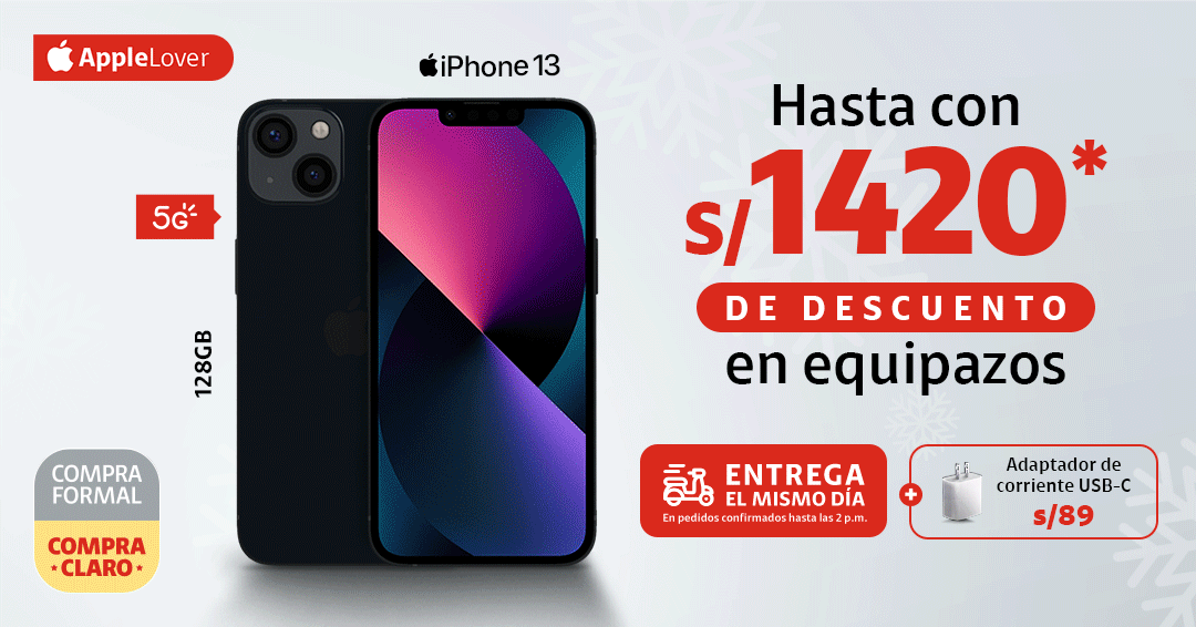 | | | |  | | |  | | ENTREGA EL MISMO DÍA En pedidos confirmados hasta las 2 p.m. | | En pedidos confirmados hasta las 2 p.m. | | |  | | Con tu línea 964433480 | |  | | Sujeto a evaluación crediticia. Sólo válido para CAC, DAC y Cadenas del 12.12.25 al 15.12.25 y/o hasta agotar stock. Al contado con acuerdo de equipos a 18 meses. Stock mín: 10. Máx. 1 equipo por línea. Renovación con acuerdo de equipos vencido. Portabilidad de postpago a postpago. Planes Max Ilimitados no disponibles en Iquitos. Se garantiza 40% de la velocidad contratada. Plan Max Ilimitado 79.90 incluye 125GB al mes en alta velocidad. Consulta condiciones y restricciones en claro.pe | | | ¡Suma Claro puntos! Por pagar a tiempo tu recibo, ya tienes Claro puntos acumulados. | | |  | ¡Canjea Claro puntos por un descuento adicional! Consúltalo con tu asesor y obtén un descuento mayor para tu equipo. Ver Equipos | | | |  | | | Tienda Claro | | Encuentra las mejores marcas en equipos y accesorios. | | | | | | | | | |