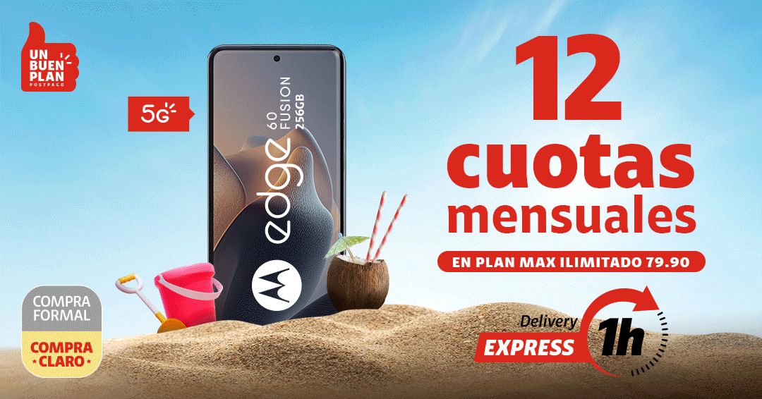 No vale en Cadenas de Tiendas. Sujeto a evaluación crediticia, para clientes DNI o RUC10, hasta el 31.01.26 y/o agotar stock. Stock mín: 3. Acuerdo de equipos y cuotas a 12 meses. En Renovación con acuerdo de equipos concluido de 18 meses. Costo de equipo no incluye costo del plan. Plan Max Ilimitado no vale en Iquitos. Cobertura Delivery Express y más restricciones: tiendaclaro.pe