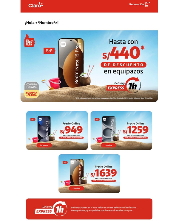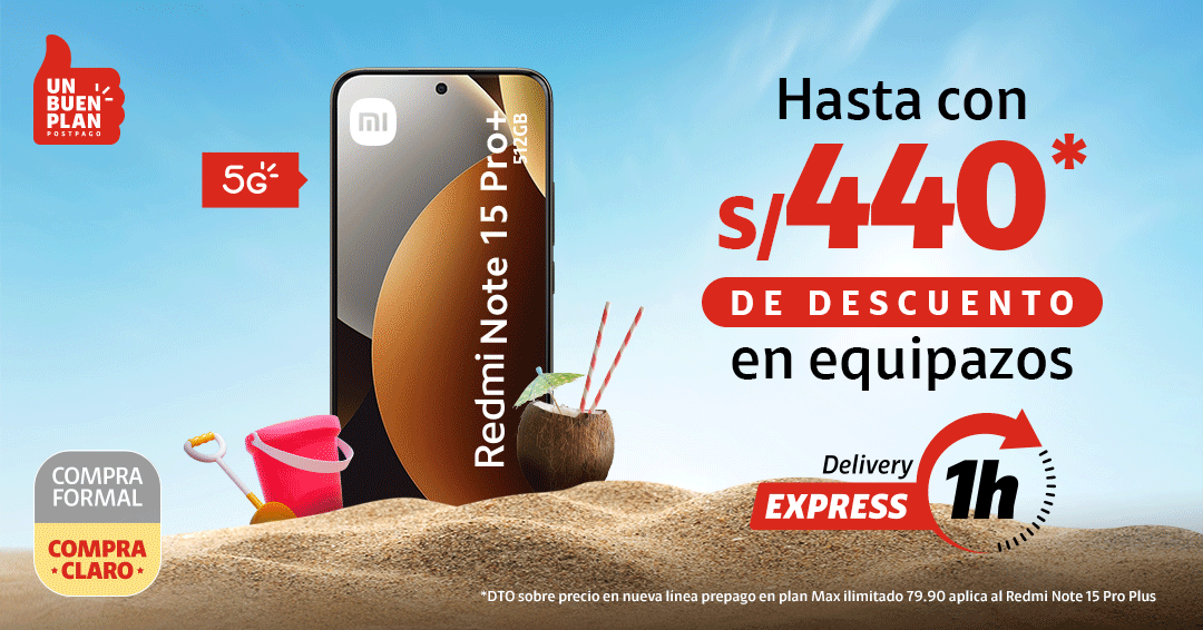 | | | |  | | |  |  | | Delivery Express en 1 hora valido en zonas seleccionadas de Lima Metropolitana y para pedidos confirmados hasta las 5:00 p.m. | | |  | | Con tu línea 964433480 | |  |  | *En Renovación. Cobertura 5G y cómo disfrutarlo en claro.pe/5g Sujeto a evaluación crediticia (clientes DNI y RUC 10). Vale al 31.01.26 y/o hasta agotar stock. Stock mín.: 3. Al contado con acuerdo de equipos a 18 meses. En renovación con acuerdo de equipos concluido. Costo de equipo no incluye costo del plan. Restricciones: tiendaclaro.pe Recibirás el mensaje de la Ruleta Gandora, solicita recibir publicidad y participa. No aplica para RUC 20. Vale del 01/01/26 al 20/01/26 y/o hasta agotar stock. Stock de premios: 1536033. Max. 1 premio por línea o play Claro Hogar. Premio de celulares no disponible para prepago. También participan clientes actuales que realicen las operaciones de la promoción. Tipos de premios según plan y restricciones: claro.pe/ruletaganadora | | | Tranquilidad y ahorro Protege tu nuevo equipo ante lo inesperado | | |  | Protección Móvil Cuídalo ante robo, rotura de pantalla y más. Más información | | |  | ¡Explora la tienda más chévere! Encuentra muchos más equipos de última generación Más información | | | | | |